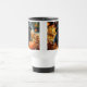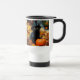 ¡Mug de viajes con un adorable gato negro usando el gorra de una bruja! Esta pequeña corbata posa con una calabaza. El otoño deja alfombras en el suelo del bosque. ¡Un regalo perfecto para las celebraciones de Halloween!