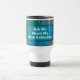Una foto de piedra pulida azul y verde aparece en esta taza de viaje. Perfecto para cualquier rockero al que le encanta hablar de su colección de tesoros. "Pregúntame sobre mi colección de rock" puede ser personalizada de forma rápida y sencilla. Foto original C. McGouldrick