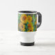 Mug de viajes con la pintura al óleo de Claude Monet Bouquet of Sunflowers (1881). Hermosos girasoles en un jarrón azul sobre una mesa roja. Un gran regalo para los aficionados al impresionismo y al arte francés.