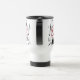 Teclados modernos y elegantes de piano, clarinets y notas musicales en blanco y negro y personalizadas con un elegante y editable monograma de escritura en un color de muestra rojo en la parte delantera y trasera de esta taza de viaje. Ideal para los músicos que tocan principalmente piano y clarinete. Póngase en contacto con el diseñador ANTES DE PEDIRLE a través de Zazzle Chat o makeitaboutyoustore@gmail.com para obtener modificaciones de diseño, ayuda para personalizar o transferir el diseño.
