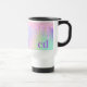 Un fondo holográfico de moda con unicornio y colores pastel arcoiris en rosa, violeta, verde menta. Decorado con goteo en rosa y violeta. Personalice y agregue sus iniciales de monograma x3. Letras de color púrpura negrita. ¡Un poco de luz diaria para alegrar el día!