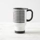 El patrón clásico de comprobación de búfalos blancos y negros decora esta taza de viaje de acero inoxidable blanca con un guión de doble marco inicial sobre rosa. Cambie fácilmente el valor inicial utilizando la plantilla proporcionada. Para cualquier bebida - caliente o fría; 3,5" de diámetro x 6,2" de altura, capacidad de 14 oz. La calidad de impresión es excelente en estos tumblers especializados. Consulte "Acerca de este producto" para obtener más información y atención. NO usar en microondas.
