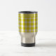 Un muy elegante Travel Mug sin derrame, con un patrón de gingham de chequeo blanco y amarillo de Lemon Zest. Puede agregar texto o un nombre a la banda simple de la parte superior o dejarlo vacío.