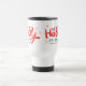 Navidades Holly Jolly Fun Winter Personalized Name Travel Mug presenta el texto "Holly Jolly en la tipografía de escritura de caligrafía moderna en rojo y azul y personalizado con tu nombre personalizado. Acentuado con hojuelas y copos de nieve. Los regalos perfectos para Navidades y vacaciones o para fiestas Navidades. Diseñado por ©Evco Holidays www.zazzle.com/store/evcoholidays