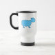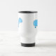 Un dibujo animado de una oveja, en azul. En un fondo blanco.