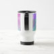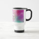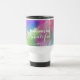 Una taza de viaje personalizado que presenta un colorido fondo abstracto con la frase "Haz que cada día sea hermoso".