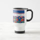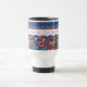 Una taza de viaje de bonito para personalizar, con un toque nostálgico y un patrón retro floral de mini-impresión sobre fondo azul profundo, recortado con efecto de encaje blanco. Parte de la colección "Granny Print" de Posh & Painterly, este patrón de collage de papel pintado a mano puede ajustarse fácilmente para que se ajuste a cualquier Mug.
