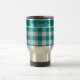 Estilo de acero inoxidable Travel Mug con un patrón de gingham de cheque en verde azulado y blanco. Puede personalizar esta taza con el nombre del propietario o, alternativamente, dejar la banda superior sin formato.