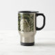 A travel mug with the floral pattern by William Morris (1834-1896), Pimpernel (1876). White poppies with green leaves and yellow pimpernel flowers. He was a British artist best known for his influence on the Arts and Crafts movement and his wallpaper design.