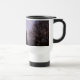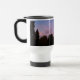 Esta taza de viaje cuenta con una hermosa puesta de sol morada con árboles en silueta contra ella. Todos los beneficios de la venta de este artículo se donarán a Mind