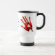 Guarde sus manos sangrientas de mi café es completo con las impresiones sangrientas de la mano