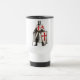 Bold crusader knight emblazoned on a sturdy travel mug.