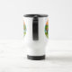 This is a travel mug that has an illustration of a street scene that is colorful.