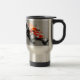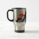 Esta atractiva taza cuenta con un coche de carreras de ruedas abierto borroso por velocidad.