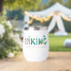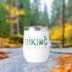 Esta taza de vino minimalista presenta la palabra "senderismo" en tipografía negrita y llamativa, inspirando a los espectadores a abrazar el aire libre y explorar el mundo natural. El eslogan "Rompe con la rutina" anima a los espectadores a desconectar de las rutinas diarias y encontrar aventuras en los senderos.