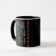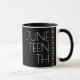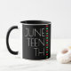 Una taza de café de la celebración del 10 de junio. Tiene un diseño que incluye un fondo negro, una franja roja, negra y verde y las letras son blancas.