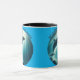 Un delfín bajo el agua con rayos de luz solar filtrándose a través del agua. Las palabras 'bucear profundo, vivir libre' están escritas encima de la imagen. Una maravillosa taza con un mensaje inspirador. Contiene contenido generativo.