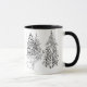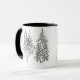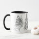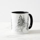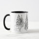 Taza Deer, invierno, bosque, árboles de Navidad, monocr