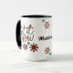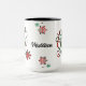 Festividades Navidades en la taza mostrando la frase "Déjenlo nevar" y copos de nieve en un patrón inmaculado. El nombre de la parte delantera de la taza se puede personalizar con el nombre del destinatario.