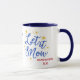 "¡Dejen que nieve en algún otro lugar" declara esta linda taza de café con temática invernal! El texto está impreso en ambos lados, con copos de nieve dorados cayendo por todos lados. En el centro está tu nombre u otro texto, como quieras. El color del texto es azul y rojo. Perfecto para la temporada de vacaciones, pero adecuado durante todo el invierno.