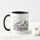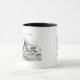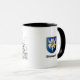 Taza con dibujo y escudo de armas del famoso acorazado alemán Bismarck de la segunda guerra mundial con el nombre del barco escrito con letras fraktur.