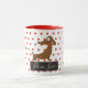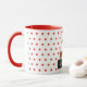 Lindo dachshund de dibujos animados sobre un fondo de lunares rojos.