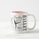 El arabesque es considerado por muchos ser la actitud más hermosa del ballet. Aquí está un diseño que celebra el arabesque y el ballet en elegancia simple -- en blanco y negro -- pero esta versión tiene apenas un tacto del rosa del ballet. La versión más amplia del diseño apenas para los abrigos de las tazas alrededor hasta el final. Esto es una taza maravillosa para un bailarín de aspiración joven o un profesor del ballet. Este artículo es adaptable con la opción añadir su propio texto e imagen para la personalización. Haga clic en simplemente el "personalizar él!" abotone para conseguir comenzado en la edición. www.Gifts4Dancers.com