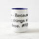 taza de café 15oz, blanca con la manija y el borde azules. Tiene el texto "Linux - porque las mejores cosas de la vida están libres. #FOSS". el #FOSS se coloca gratis y software libre. Linux es un sistema operativo alternativo para los ordenadores. Las versiones comunes incluyen Ubuntu, Fedora y la menta que son fuente libre y abierta.