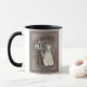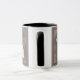 La taza blanca y negra del campanero que ofrecía a una vaquera de trabajo dura que casi tiene bastante hasta compra ahorrada cierto vestido ella ha tenido su ojo encendido.