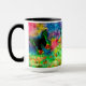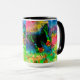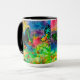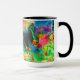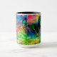Mi color de agua original imprimió en una taza de consumición que ofrecía el sistema del arbusto de Omphalea en un fondo brillante de la puesta del sol visitado por las polillas de la puesta del sol (Chrysiridia Rhipheus), que son indígenas a Madagascar, África.