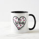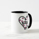 La taza del corazón del EDS que ofrece un grande oye con corazones rosados más pequeños resumidos en negro dentro del corazón grande con las letras EDS dentro del corazón grande para el síndrome de Ehlers-Danlos.