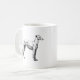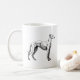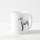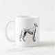 La taza con negro simple imprimió diseño de un dibujo lineal del galgo.