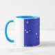 Taza detallada azul con diseños azules y blancos de la estrella.