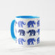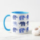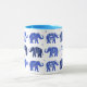 Taza de café elegante con un elefante y un modelo de lunar azules y blancos. Personalizar para añadir cualquier texto que usted quiera. Gran taza para el hogar o la oficina.