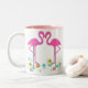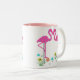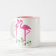 Ilustraciones gráficas originales de las participaciones rosadas de la yarda del flamenco con las flores coloridas y caprichosas. La taza colorida de la diversión que haría los bonitos regalos, incluso añade algunas flores a la taza para un regalo del dulce en cualquier momento.