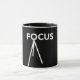 Esta taza es sobre todo negra con el logotipo del foco y algunas otras áreas en blanco.
