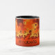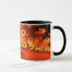 Un sol anaranjado expulsa espirales ardientes en estas ilustraciones del fractal. Hay espacio para un nombre en el centro de la taza.