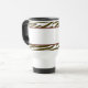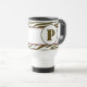 Una taza que ofrece una frontera completa del abrigo del estampado de zebra marrón a través del top y de la parte inferior. Borde rosado. Circunde en el centro resumido en marrón con el monograma marrón dentro. Estarza la fuente. Asalte disponible en otros colores y estilos incluyendo el campanero, morphing, y más.