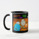Asalte la atracción de muchos monstruos fantasmagóricos, momia, una calabaza asustadiza. La taza tiene fondo negro y anaranjado con los monstruos y el texto coloridos.