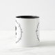 Asalte con citas de Sr. Darcy y de la Srta. Elizabeth Bennett del orgullo y del perjuicio de la historia. Sr. Darcy está en un lado mientras que Srta. Bennett está en el otro lado de la taza. Imagen en negro en la taza blanca.