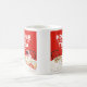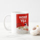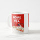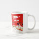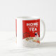 Taza clásica con imagen del perro del barro amasado. El texto lee "casero es donde está el té."