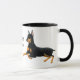 El diseño original de la bella arte de perros del Pinscher del Doberman del diseñador Carolyn McFann del estudio de ronroneo de dos gatos en una taza adaptable para el Doberman aviva.