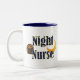 Diga el mundo que usted es orgulloso ser enfermera en turno de noche con esta taza linda. El texto en este diseño de la diversión es azul de medianoche con las estrellas amarillas. Es destacado por un pequeño búho marrón y una luna creciente amarilla. El nombre en el lado opuesto se puede cambiar fácilmente para adaptarse a sus propias necesidades. Este diseño se puede utilizar en cualesquiera de un número de diversos tazas, vidrios y steins.