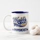 Dé un amigo, un miembro de la familia o a un compañero de trabajo esta mejor embutidora del regalo o de la media del físico de los mundos divertidos. Logotipo del estilo de los deportes en azul y moreno para su físico preferido. Hace una gran idea para un regalo para un físico.