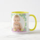 Esta taza con diseño del pájaro de bebé es una taza maravillosa del recuerdo que coordina con otros productos del mismo adorno. La taza se puede personalizar en la parte posterior con un nombre o un mensaje. Gran recuerdo para una celebración del poste-nacimiento o un primer cumpleaños. Un regalo hermoso también de madre del día o del día del abuelo.