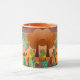 Desierto, Montañas, Cactus en tonos muticolores. Patrón suroeste en el fondo de montañas y cactus esparcidos por todo el mundo. El consumidor puede personalizar dos colores tonificados (actualmente en naranja quemado).