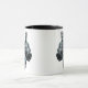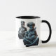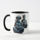 Ce mug original présente l'image étrange d'une poupée au teint bleu, assise, avec deux lapins dans ses bras. à l'arrière plan la même scène avec une autre poupée en noir et blanc. La poupée a de longs cheveux bouclés et porte des vêtements texturés. Elles regardent avec tendresse les lapins si doux et si mignons, une scène de tendresse. Ce design est parfait pour ceux qui aiment les créatures fantastiques, les poupées et les animaux. Ce mug est un cadeau idéal pour les amateurs d'art fantastique.. Un mug original qui paraît effrayant alors qu'au contraire , il représente l'amour et la tendresse envers les animaux.