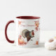 Café de acción de gracias o taza de té con nuestra Turquía patriótica deseando un feliz día de gracias y Dios bendiga a Estados Unidos.