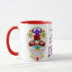 El Día de los Muertos se celebra en el centro y sur de México el 1 y 2 de noviembre. Es tiempo de honrar a los seres queridos fallecidos. El cráneo que ves en esta taza se llama azúcar. Representa cráneos del azúcar que representan a los muertos.