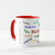 Ringer Mug Añade algo de encanto a tu diseño de taza con el Ringer Mug. Mano y labio de la taza están coloreados para coincidir. 11 oz. Disponible en diez colores. Apta para microondas y lavavajillas. De importación.